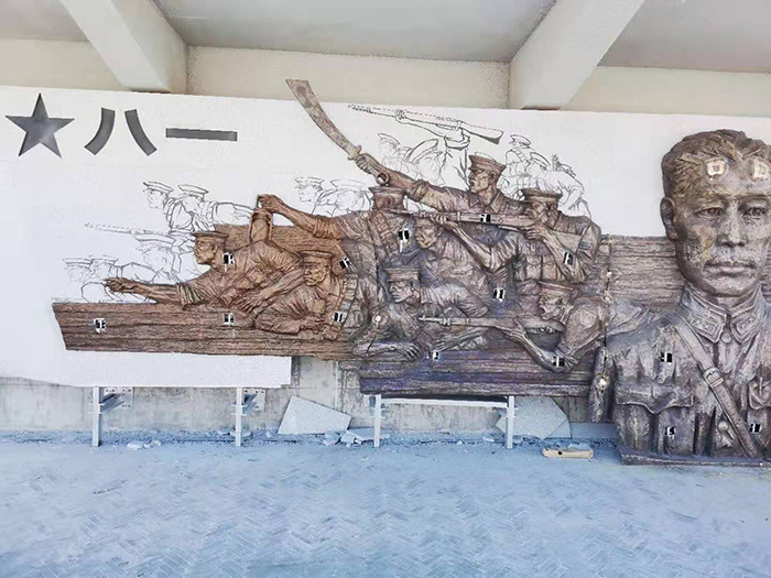 周恩来同志渡海处纪念公园下沉广场铜雕施工现场
